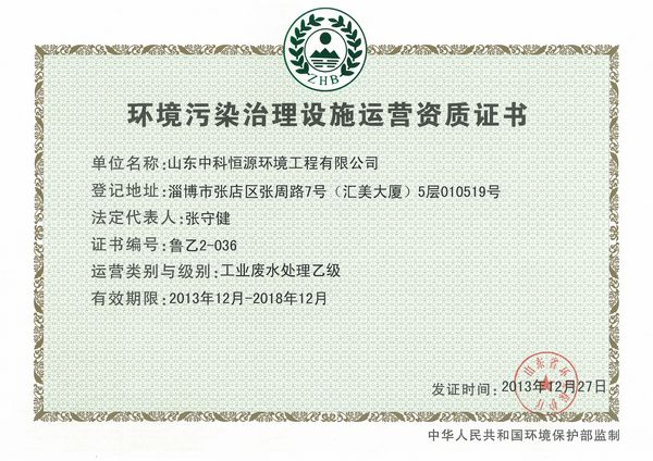 我司再次通過山東省環保廳環境污染治理設施運營資質乙級審核。